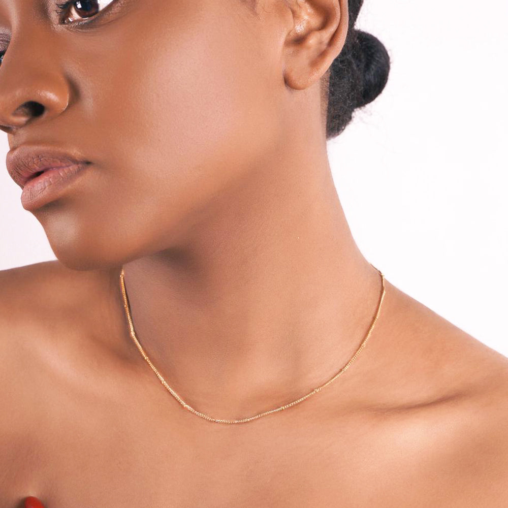 This 18k gold plated Satellite Chain Necklace is the perfect chain for some dainty chain layering, minimalistic but eye-catching.